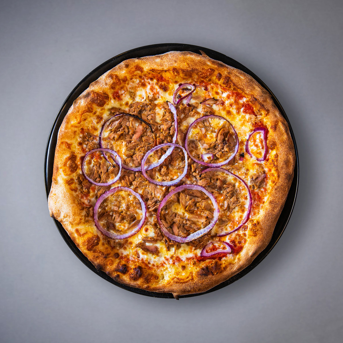 Knuspriger Boden, fruchtige Tomatensauce, zarte Teriyaki-Hähnchenstreifen, rote Zwiebeln, frischer Brokkoli...
